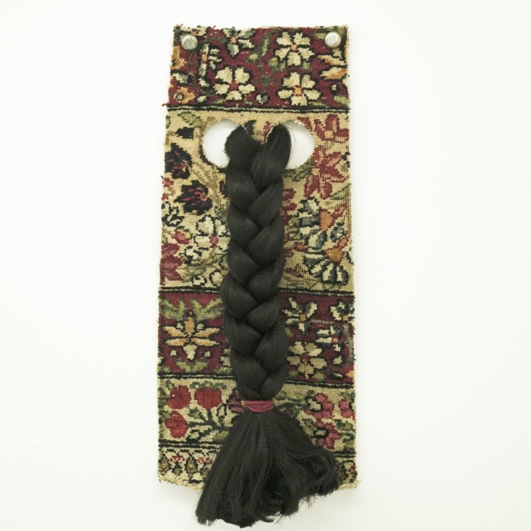 I feel very strongly as an artist that one must be utilising force to support the movement in Iran , to serve. And here is a piece that's supposed to be a fracture or a slice of a carpet and the hair is synthetic. I wanted to emphasise the significance— the Persian carpet is a symbol of Persian craft and Persian art. Even when you look at the paintings from the 18th century, 19th century of kings and queens, you will see they all have a Persian carpet. And I think if you look at photographs of Freud’s study room there was a persian rug. So this Persian carpet has been very quietly living a life and it's a very, very highly, a powerful symbol.